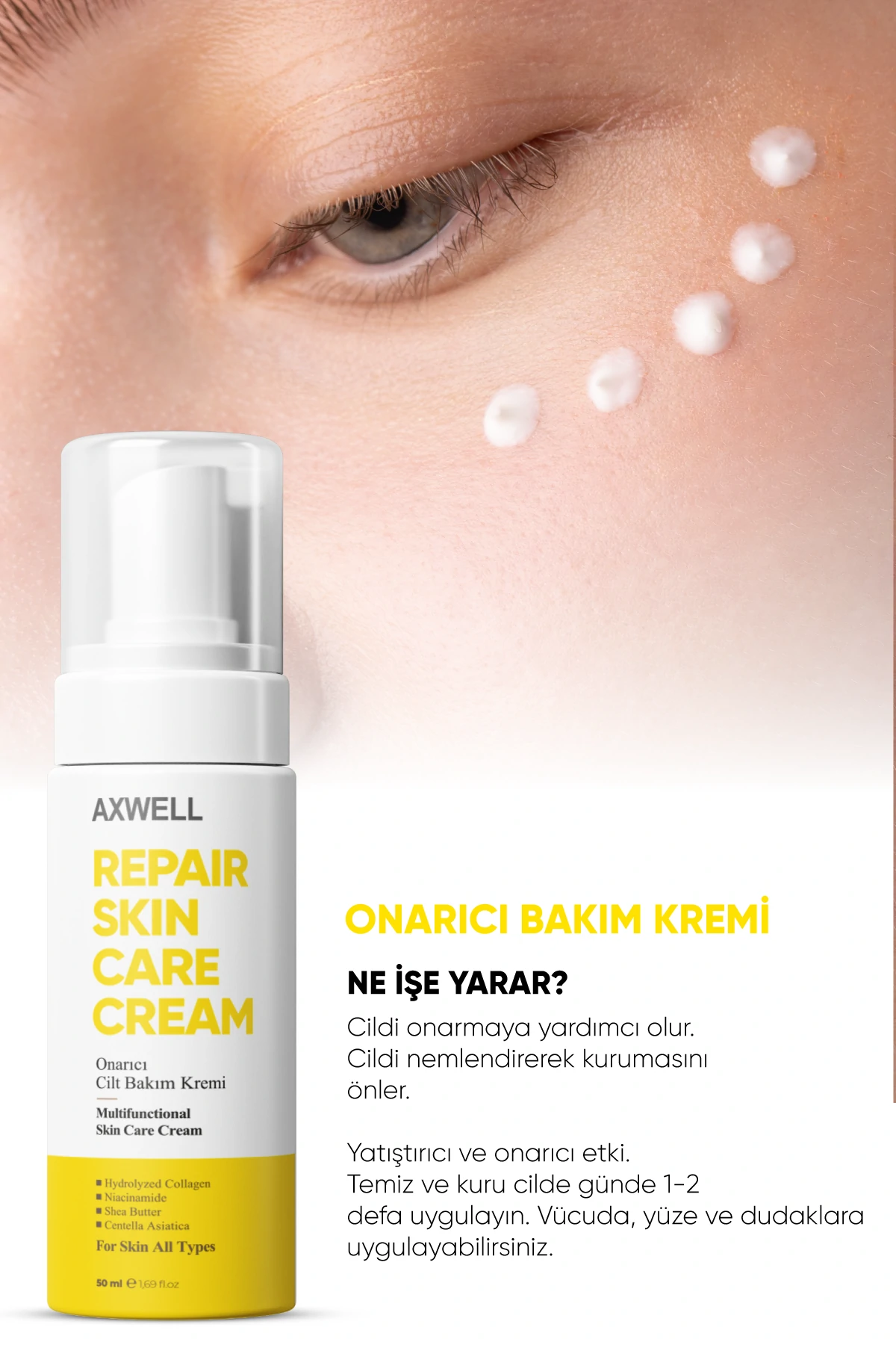 • Onarıcı Bakım: Cilt bariyerini güçlendirerek yıpranmış cildi onarmaya yardımcı olur.